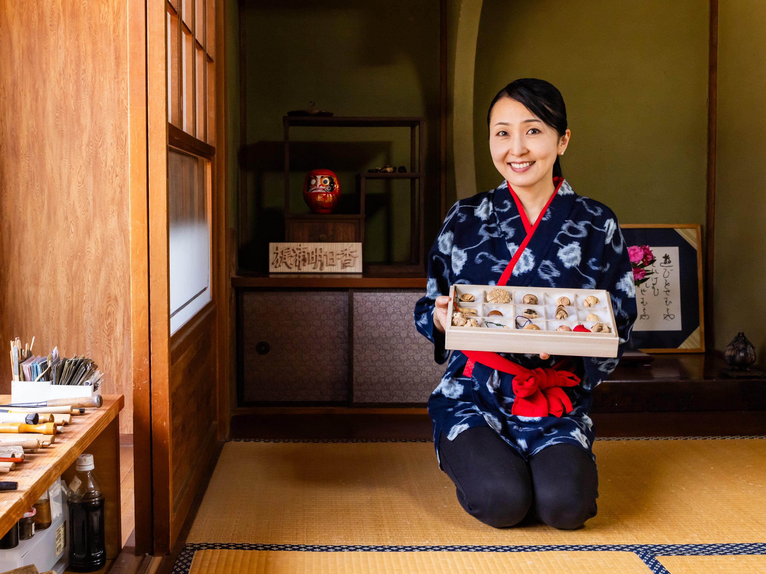 Asuka Kajiura is an Ise netsuke craftsman and the representative of 'link', a women's craftsmen's group in Tokai region. She is a former broadcaster at Tsu Broadcasting Station of NHK Nagoya. During her time at NHK, she managed the 'Techniques of the Tokai Region' segment, where she interviewed various craftsmen. She was impressed by the beauty of traditional crafts and the passion put into them, felt a sense of crisis at the potential loss of these crafts due to a lack of successors. This motivated her to become a craftsman herself.